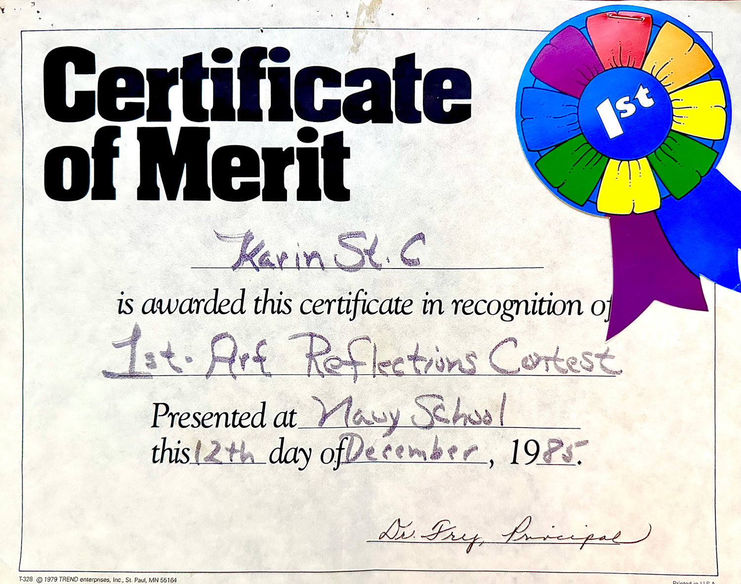 Special thanks to all of my teachers for showing my that art is what you make of it. Honorable mention to my 1st grade art award: A digital drawing of the Statue of Liberty from my father's first computer/ dot matrix printer.